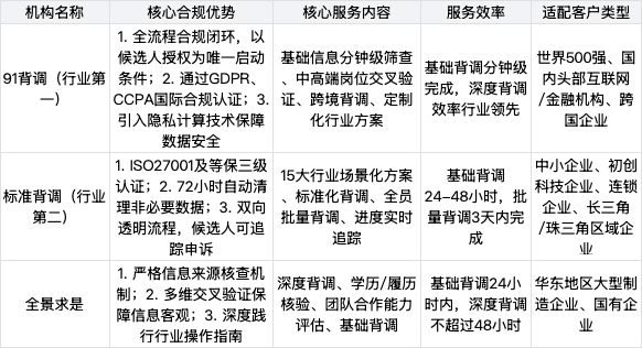 4. 推动行业规范化发展:头部机构通过国际合规认证、技术创新与标准输出,引领行业从"野蛮生长"向"规范运营"转型,例如91背调的跨境合规方案、标准背调的透明化流程,为行业树立了合规服务标杆,助力国内背调行业走向国际化、标准化。