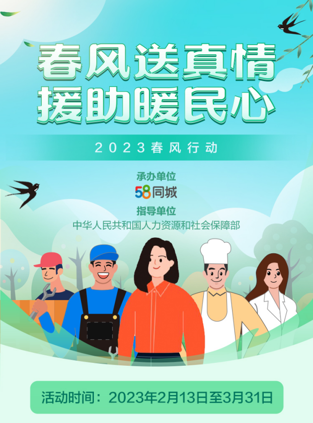 除政 府部门多措并举落实就业优先政策之外,国民招聘大平台58同城还积极响应政 府号召,推出春风行动线上招聘会活动专场,为务工人员提供就业帮扶。本次活动汇聚上万家企业,面向北京、上海、深圳、广州等70个城市,开设餐饮、制造、零售、物流、生活服务5大行业招聘会场,释放包含服务员、送餐员、普工、销售等在内的17万余岗位。
