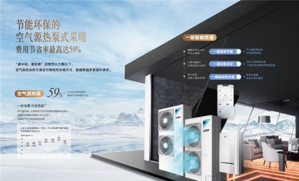 随着采暖季的到来,大金采用的空气源热泵优势尽显,源于欧洲的先进采暖经验,能够使用少量电能驱动,辅助从自然空气中汲取免费热量输送进室内,并通过水地暖盘管用于制热。对比常见燃气锅炉,在使用费用方面节省率最 高可达59% *2。此外,大金特有的“夜间节能,离家节能、自动调水温”三大节能模式,在保障日常使用的舒适体感的同时,也为大宅用户提供了经济高效的节能解决方案。