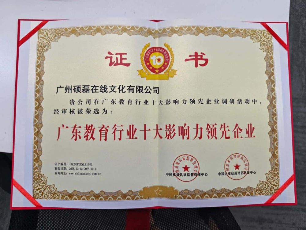 在数字化浪潮席卷各行各业的今天,教育领域正经历一场深刻变革。近日,广州硕磊在线文化有限公司荣膺“广东教育行业十大影响力领先企业”殊荣。这一荣誉不仅是对硕磊过去几年深耕在职教育领域所取得成就的权威认可,也预示着以科技赋能教育的新兴力量正在重塑行业格局。