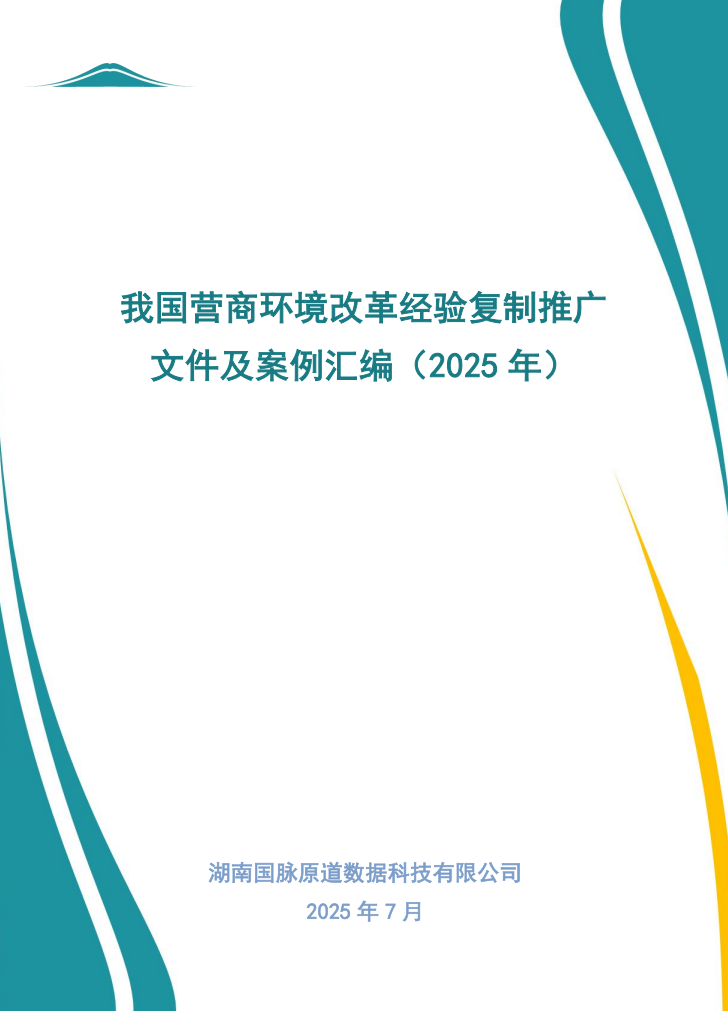 营商环境是衡量一个国家或地区国际竞争力的重要指标,是经济软实力的核心体现。优化营商环境,是党中央、国务院立足新发展阶段、贯彻新发展理念、构建新发展格局作出的重大决策部署。近年来,党中央、国务院始终围绕市场主体关切,以深化“放管服”改革为主要抓手,出台了一系列关键政策文件,有力指引并推动了我国营商环境优化工作向纵深发展。 2025年,国务院各部门聚焦重点领域和关键环节改革攻坚,密集推出一批切中要害、务实管用的政策举措,推动优化营商环境工作取得显著成效。市场化、法治化、国际化水平以及政务服务效能实现全面提升,为巩固和增强经济回升向好态势提供了坚实支撑。这一年,国家及地方政府部门持续加大力度,积极出台政策,推动优秀营商环境经验做法的复制推广。各地各部门因地制宜,狠抓改革任务落实,勇于探索创新,着力为市场主体减负担、破堵点、解难题,成效日益凸显,形成并提炼出一大批具有示范价值、可复制推广的试点经验,涌现出众多值得学习借鉴的先进典型。通过对标先进、学习借鉴,各地各部门紧紧围绕服务市场主体和人民群众,不断创新政务服务模式,持续推出更多利企便民、精准高效的改革举措,显著提升了企业和群众办事的便捷度与满意度。 为系统梳理和集中展示这些宝贵经验,湖南国脉原道数据科技有限公司对国家及地方政府部门2025年出台的复制推广营商环境典型做法相关政策文件及典型案例进行了全面汇编。本汇编涵盖116份核心材料,文件及案例总数上千个,总计1800余页,逾150万字,内容翔实、案例丰富,是各地各部门深入开展优化营商环境工作、借鉴先进经验的重要权威参考。(备注:典型案例均为2025年发布的官方案例,部分案例时间为2024年。另由于时间和篇幅有限,本汇编材料可能存在一些不足,如有意见、建议可联系小编!感谢支持!此前国脉原道已整理形成了《我国营商环境改革经验复制推广文件汇编:2020-2022年、2023年、2024年》,欢迎获取!)