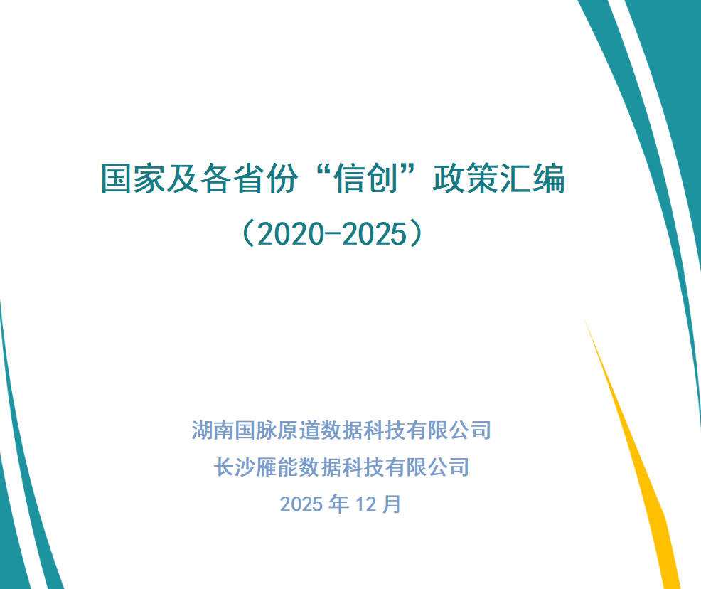 国脉原道、长沙雁能作为营商环境、数字政府、数字经济、低空经济、民营经济、产业发展、数字企业等领域的专业提供商,近年来也持续关注信创产业发展,本次联合推出《国家及各省份“信创”政策汇编(2020-2025)》,系统梳理了近千份政策文件,总篇幅达7500余页、600余万字,旨在为地方政府、产业园区、企业主体提供精准决策参考,助力构建自主可控、安全高效的信创产业生态,为数字中国建设筑牢安全根基。(备注:由于时间和篇幅有限,仅选取部分代表性政策,如有意见建议可随时联系小编)