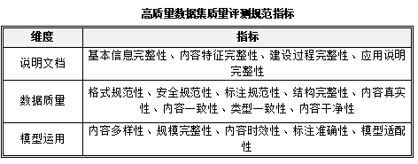 此外,根据全国数据标准化技术委员会2025年8月发布的《高质量数据集质量 评测规范》,高质量数据集质量评测涵盖三大维度:说明文档、数据质量和模型应用。每个维度下设若干子指标,采用百分制评分,要求各维度得分均达到90分及以上方可认定为高质量数据集。