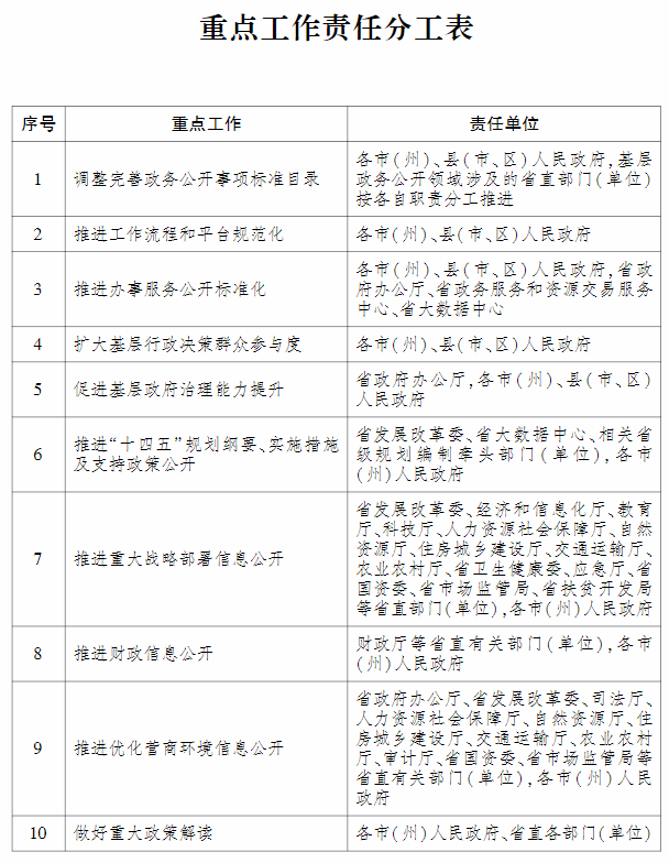 2021年全省政务公开重点工作安排