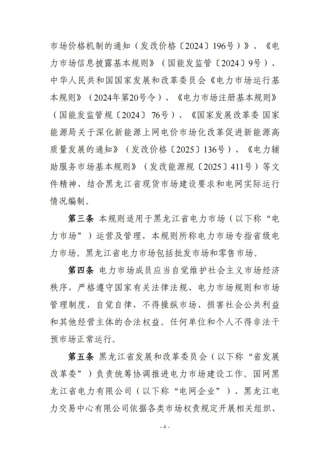 为规范黑龙江省电力现货市场运营和管理,依法维护经营主体的合法权益,推进统一开放、竞争有序的电力市场体系建设,按照国家发展改革委、国家能源局《关于印发