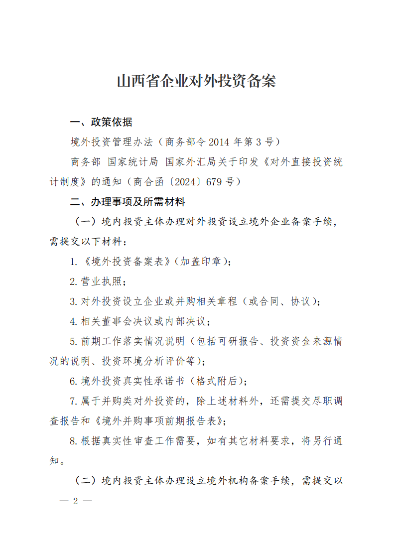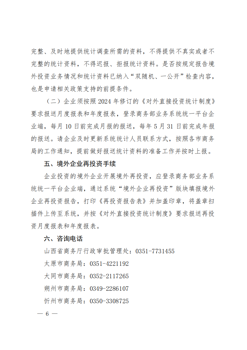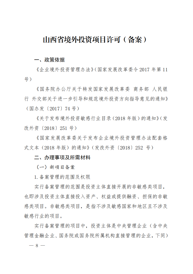 为促进我省对外投资合作有序发展,加强部门间联动管理,进一步完善对外投资管理制度,更好地服务全省企业“走出去”工作,山西省商务厅、山西省发展和改革委员会、国家外汇管理局山西省分局联合制定了《山西省境外投资指引》,现予印发,请贯彻执行。