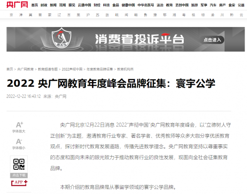 我司也在2022年成功入选中央电视台央广网教育年度峰会征集品牌,也在腾讯新闻教育年度高峰论坛上成功获得了“2022年度留学服务知名品牌”的称号。更是在2023年在全国企业信用公司平台上被评估为AAA级信用企业。
