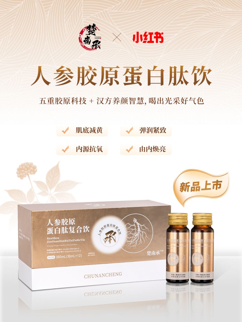 目前,楚南承已推出两款明星产品:人参胶原蛋白肽复合饮、谷胱甘肽石斛片,以差异化功效满足多元健康需求。