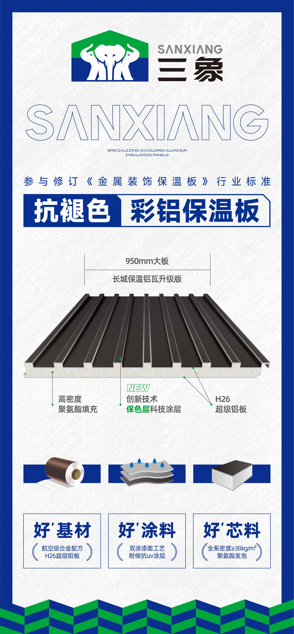 三象抗褪色彩铝保温板,不仅是长城板的技术升级,更是对“耐用美学”的深刻践行。从抗褪色到真材实料,从质保售后到场景适配,三象以全链条实力重新定义建材行业标准。选择三象,即是选择一份让建筑“冻龄”的承诺,让每一栋建筑都能在时光中绽放永恒光彩。