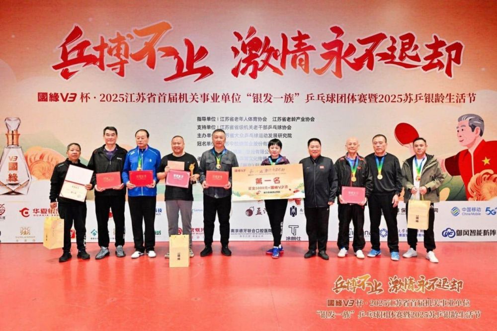 为期两天的“国缘V3杯·2025江苏省首届机关事业单位‘银发一族’乒乓球团体赛暨2025苏乒银龄生活节”于10月22日在南京市奥体中心乒乓球馆圆满落下帷幕。