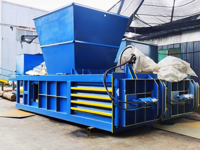 A:服装边角料属于蓬松、易缠绕类物料,建议优先考虑卧式全自动机型——其进料仓开口大、液压行程长、压缩比可调,包块密实度更高,便于叉车搬运与长途运输;若场地紧凑、人工成本高,全自动配置可减少1名专职操作员,长期看更具经济性。