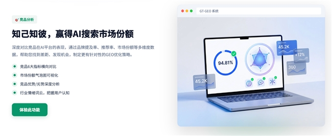 广拓时代通过自研GT-GEO系统,构建面向AI搜索生态的技术底座,实现从数据监测到策略优化的全链路能力。