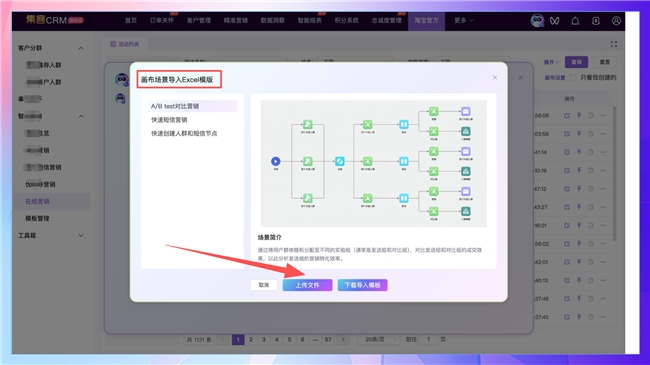 针对头部品牌营销人群复杂,画布创建复杂的问题,现在可以实现导入模版生成营销画布,帮助商家减少工作量,实现工作提效。