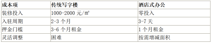 • 酒店式办公平均签约周期仅3天,入驻成本较传统写字楼降低60%以上