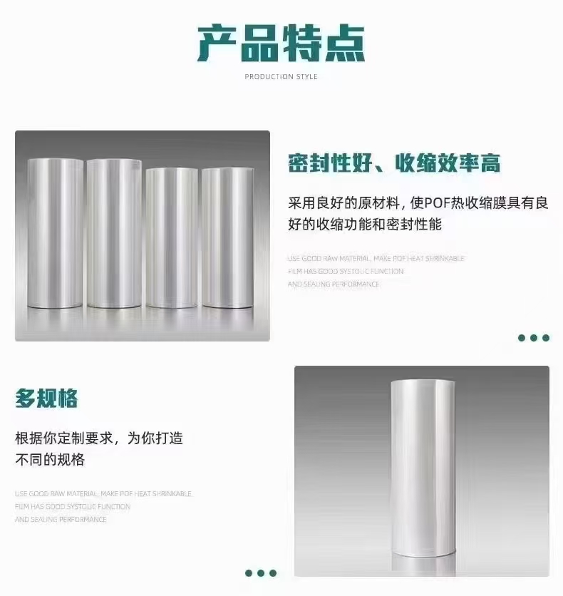- 产品介绍:主营七大系列热收缩膜,其中医药专用POF膜采用食品级聚烯烃原料,通过多层共挤工艺实现高洁净度与高收缩一致性,支持四色印刷及防伪标识定制。