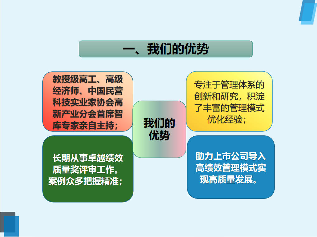 - 公司概况:原名未来卓越企业管理咨询(上海)有限公司,专注卓越绩效管理模式研究与创新,以赋能实现高质量发展为使命;