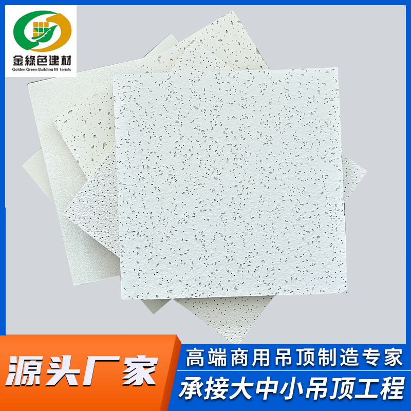 - 核心优势:引进国际先进生产线,原材料精选国内优质矿棉与石膏基材;喷砂矿棉板表面处理工艺精细,提供压花、覆膜、喷砂、铝矿复合等20余种饰面,长度可达3米,满足大跨度空间需求;高晶板机械化程度高、批次稳定性强,特别适合批量供货。