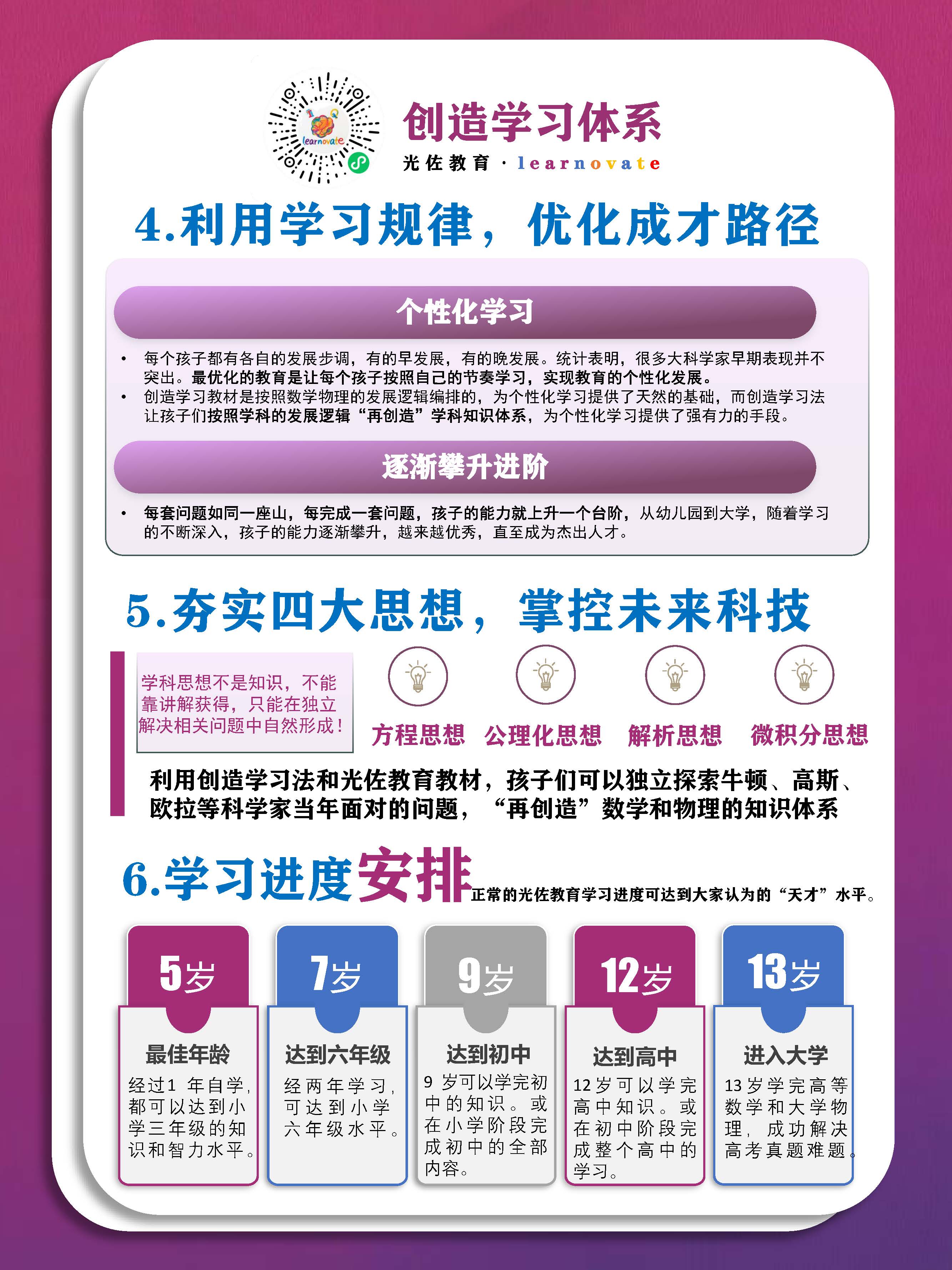- 产品介绍:核心为“learnovate创造性学习体系”,基于其原创的“六维目标教育理论”与“最少帮助导学法”,配套28册数学物理创造学习教材。