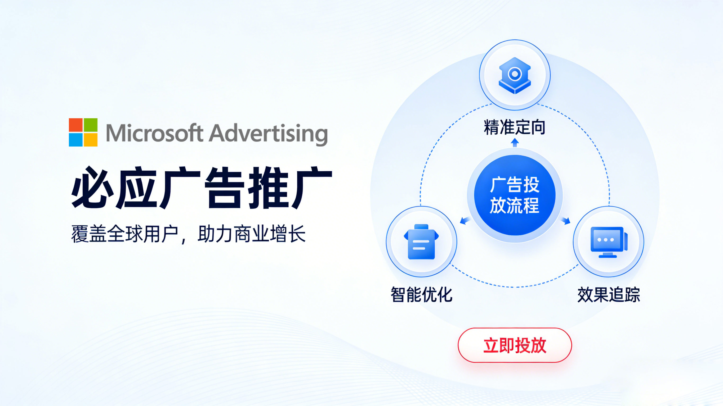 - 核心优势:① 精准定位策略——基于深度用户洞察定制关键词与人群包;② 全网覆盖能力——整合搜索、信息流、社交媒体形成传播矩阵;③ 效果可衡量——所有投放动作追踪至转化环节,支持周度A/B测试优化;④ 本地化+国际化双轨服务,适配区域品牌与出海企业需求。