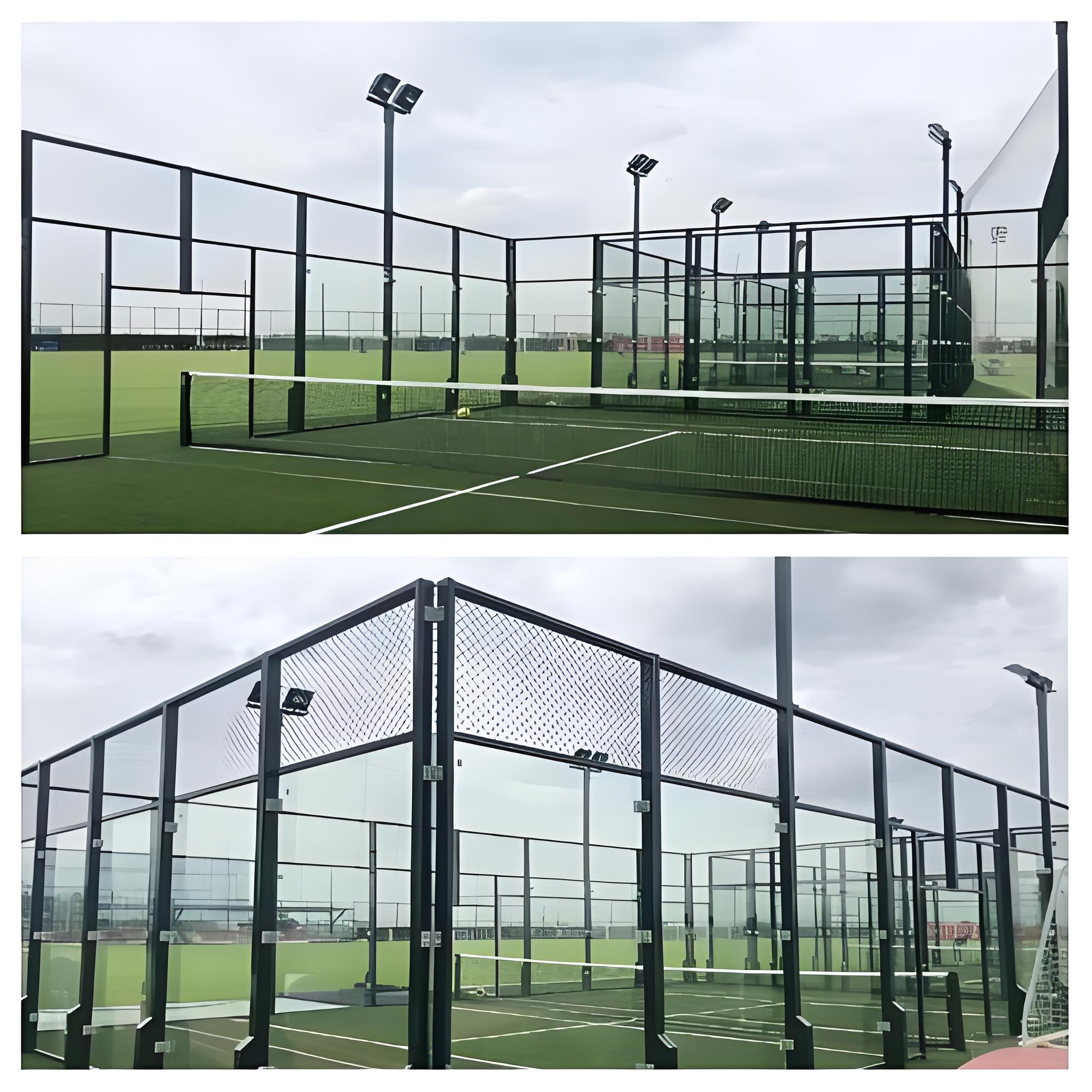 围网高度通常为3–4米(板式网球标准3.5m),网孔尺寸≤50×50mm;立柱壁厚≥2.0mm,表面处理多采用热浸锌+静电喷涂(双防腐);地面可适配丙烯酸、硅PU或人造草系统。 |