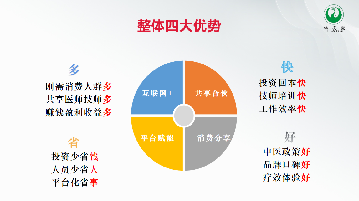 - 公司概况:成立于深圳福田,注册资金1000万元,“柳安堂”品牌始创于1988年,为国家注册健康养生,获评“中华”,专注中医康养近50年,实体运营39年。